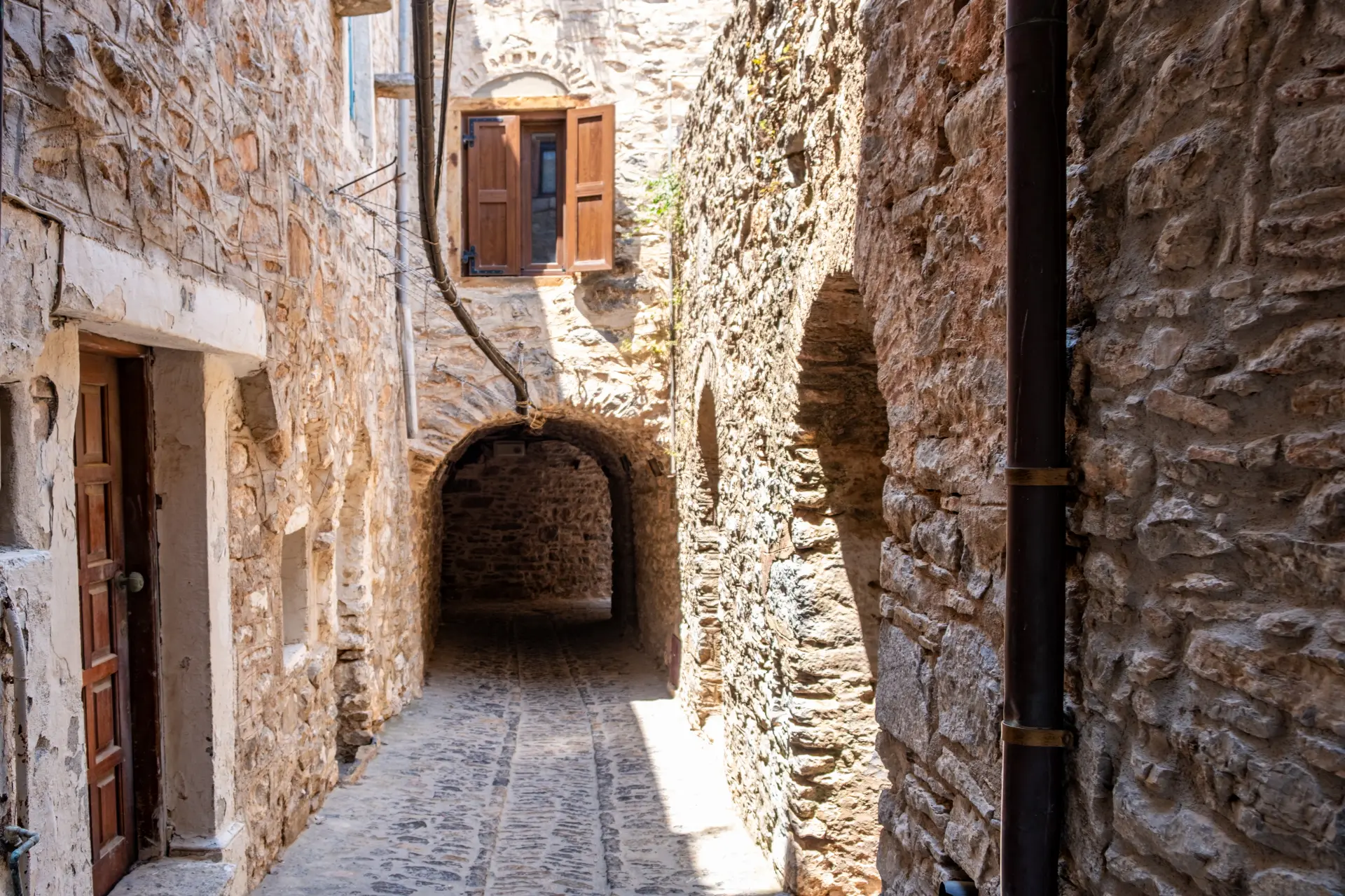 Walk through Kalamoti, Pyrgi, Vessa, and Armolia, exploring narrow alleys, stone houses, and traditional architecture.